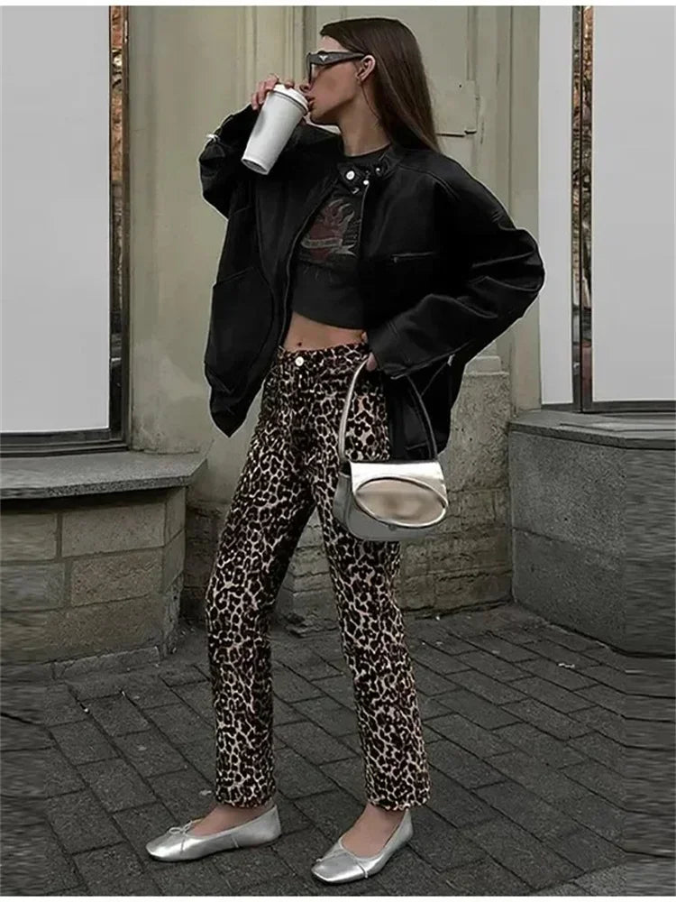 Laat je wilde kant zien met deze opvallende leopard print jeans! Deze high-waisted broek combineert het beste van vintage flair en moderne streetwear. Met een slank, recht pijpmodel zorgt deze broek voor een flatterende pasvorm die je figuur prachtig accentueert.